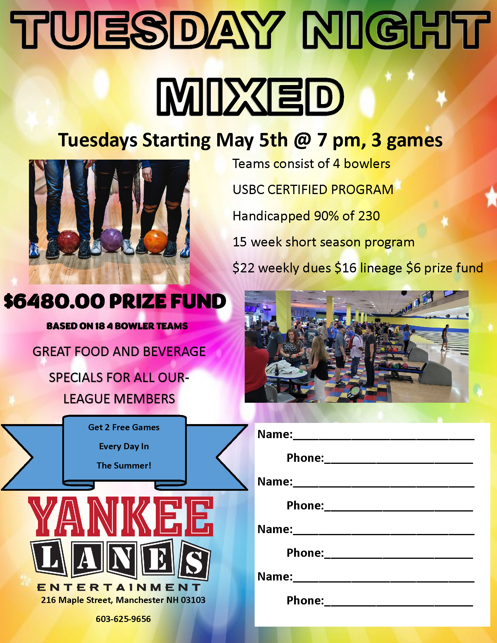 $22 weekly Dues | $16 lineage | $6 prize fund