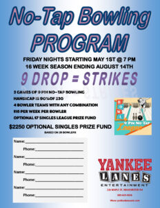 No-Tap Summer 2026 Friday Nights 7 pm 16 Weeks For Questions or Signups jbatchelder@yankeelanesentertainment.com View PDF